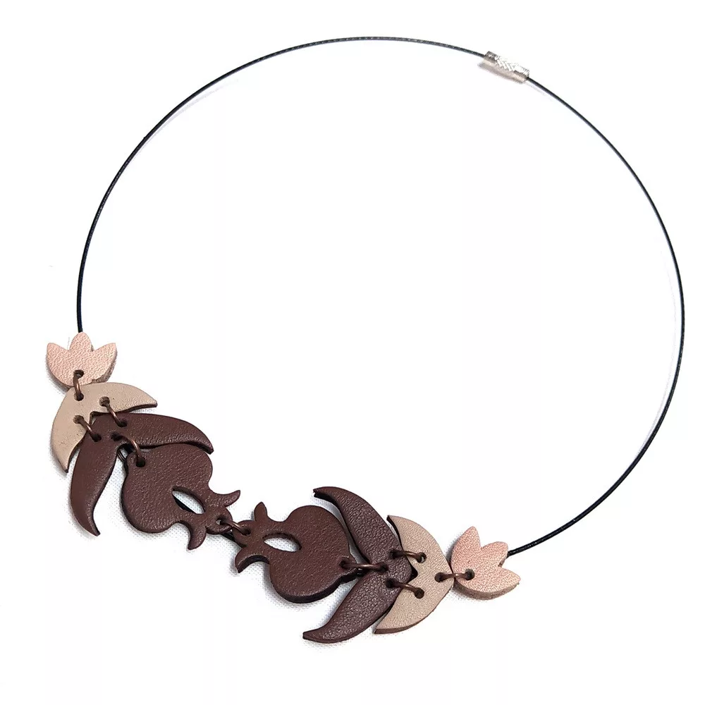Méretek: bőr virágminta szélessége 11 cm és hosszúsága 3 cm // csavaros drótkarika átmérője 14 cm